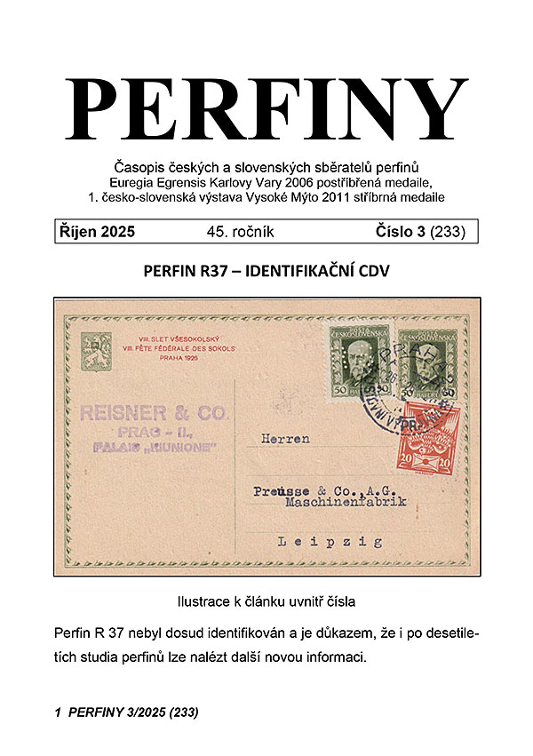 Firemní perfiny (zkratka vzniklá z anglického označení “Perforated Initials”) vznikly ve Velké Británii jako ochranné opatření před zcizováním a zneužíváním známek ve firmách. Toto opatření se postupně rozšířilo po celé Evropě i do zámoří. Československo po svém vzniku přejalo praxi povolenou v roce 1877 v Rakousko-Uherské monarchii, dále ji rozšiřovalo, a to až do doby, kdy se ve firemní korespondenci začaly více prosazovat i jiné způsoby vyplácení zásilek (např. výplatními strojky). Přestože bylo perfinování známek široce používáno, byly dlouho takto označené známky považované za poškozené a nebyly tudíž předmětem sběratelského zájmu.
